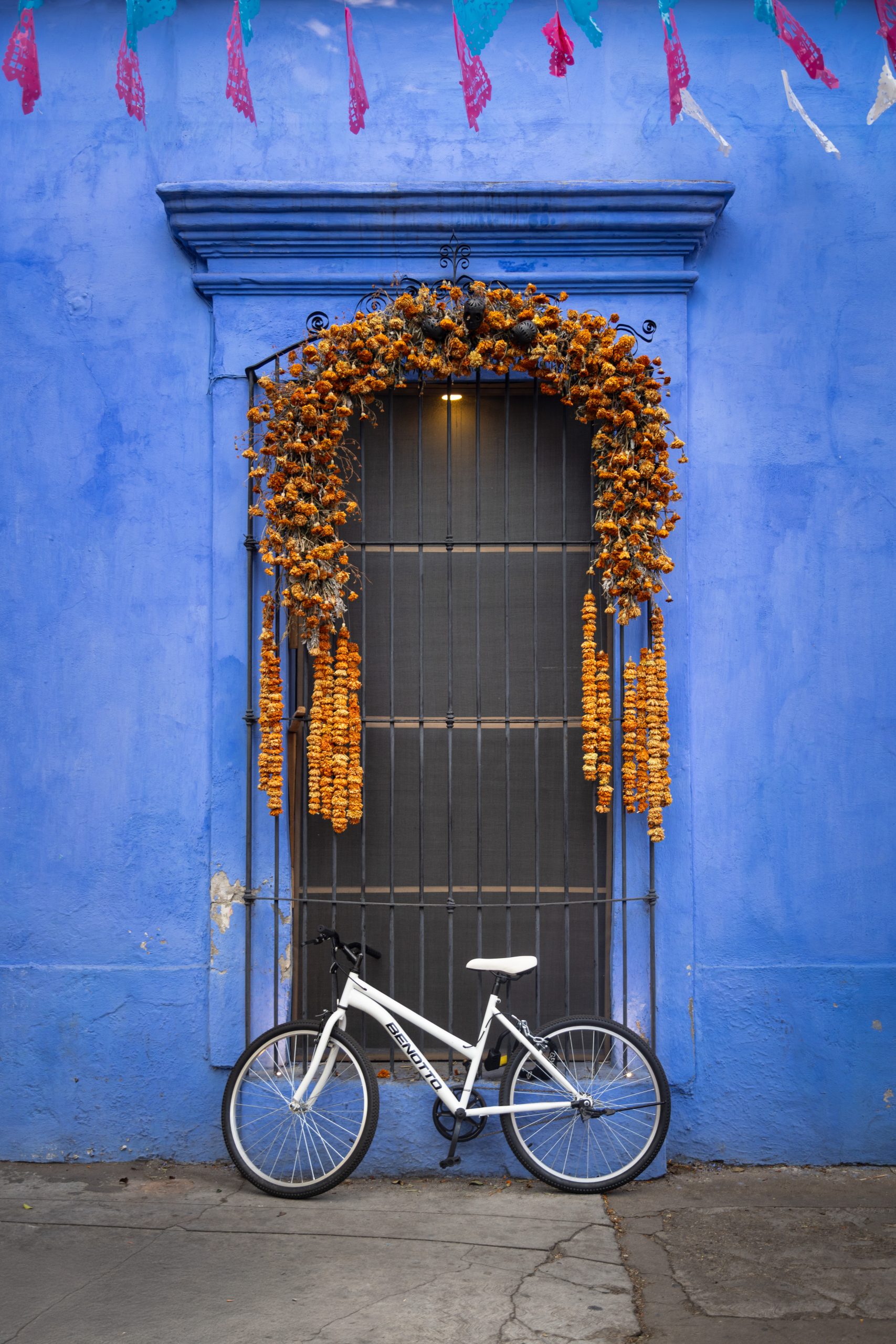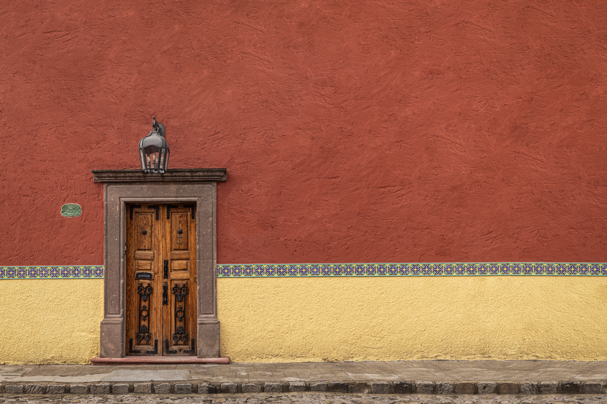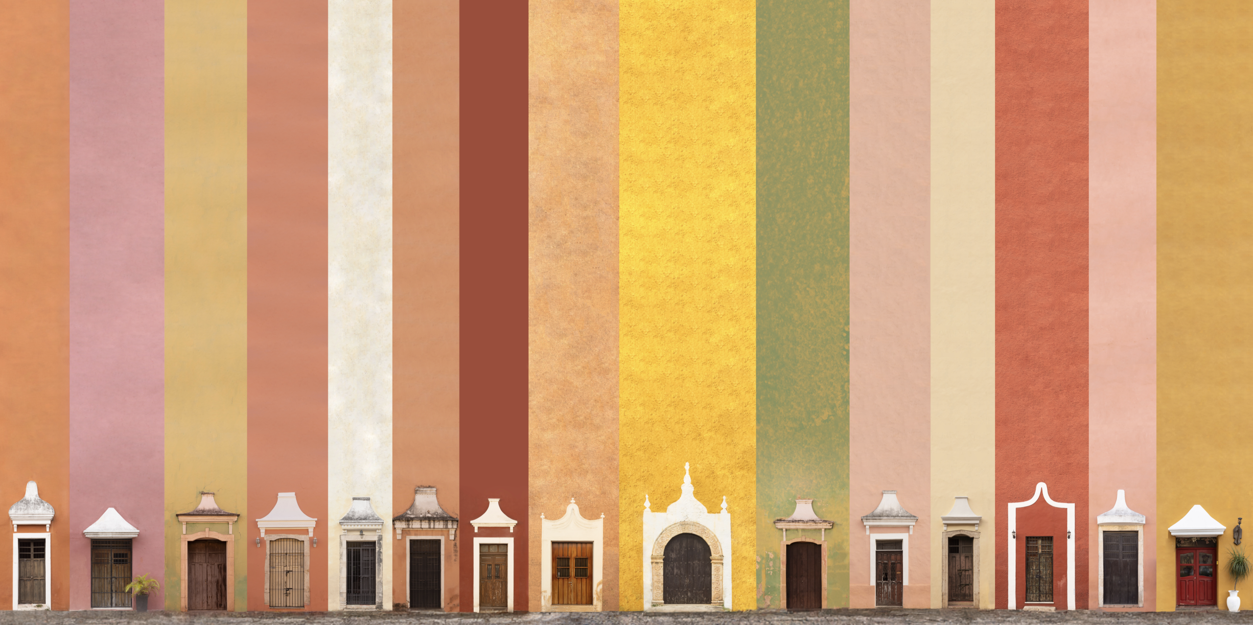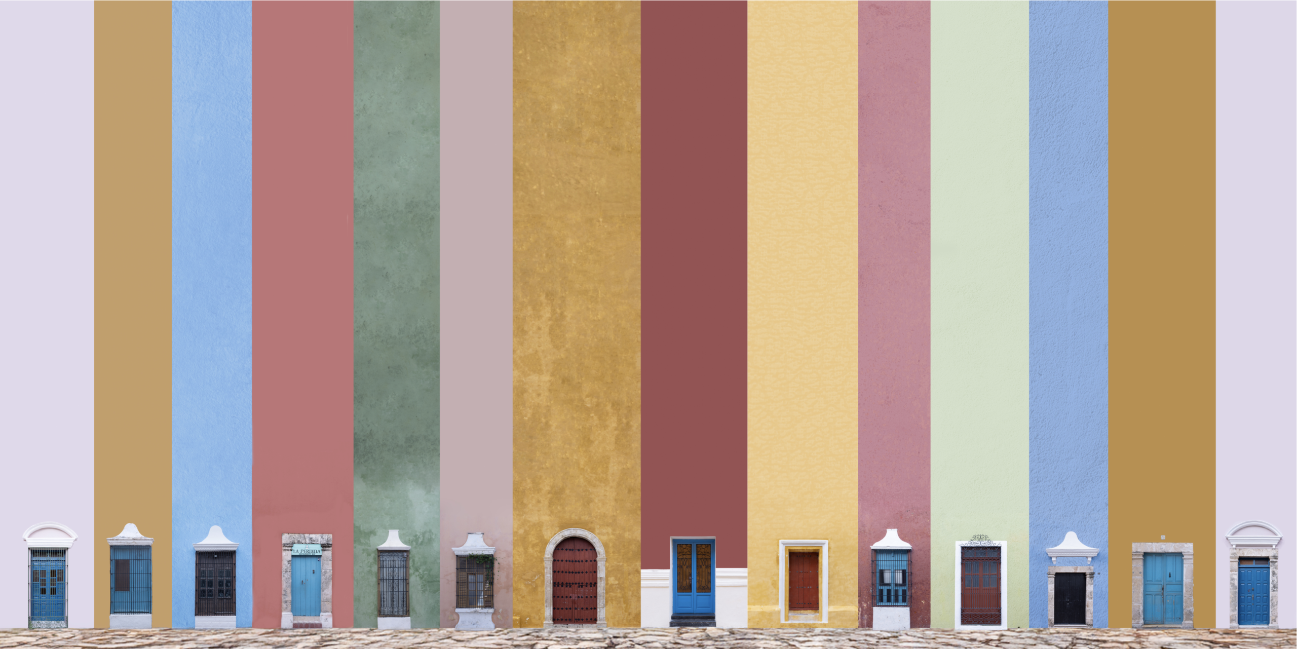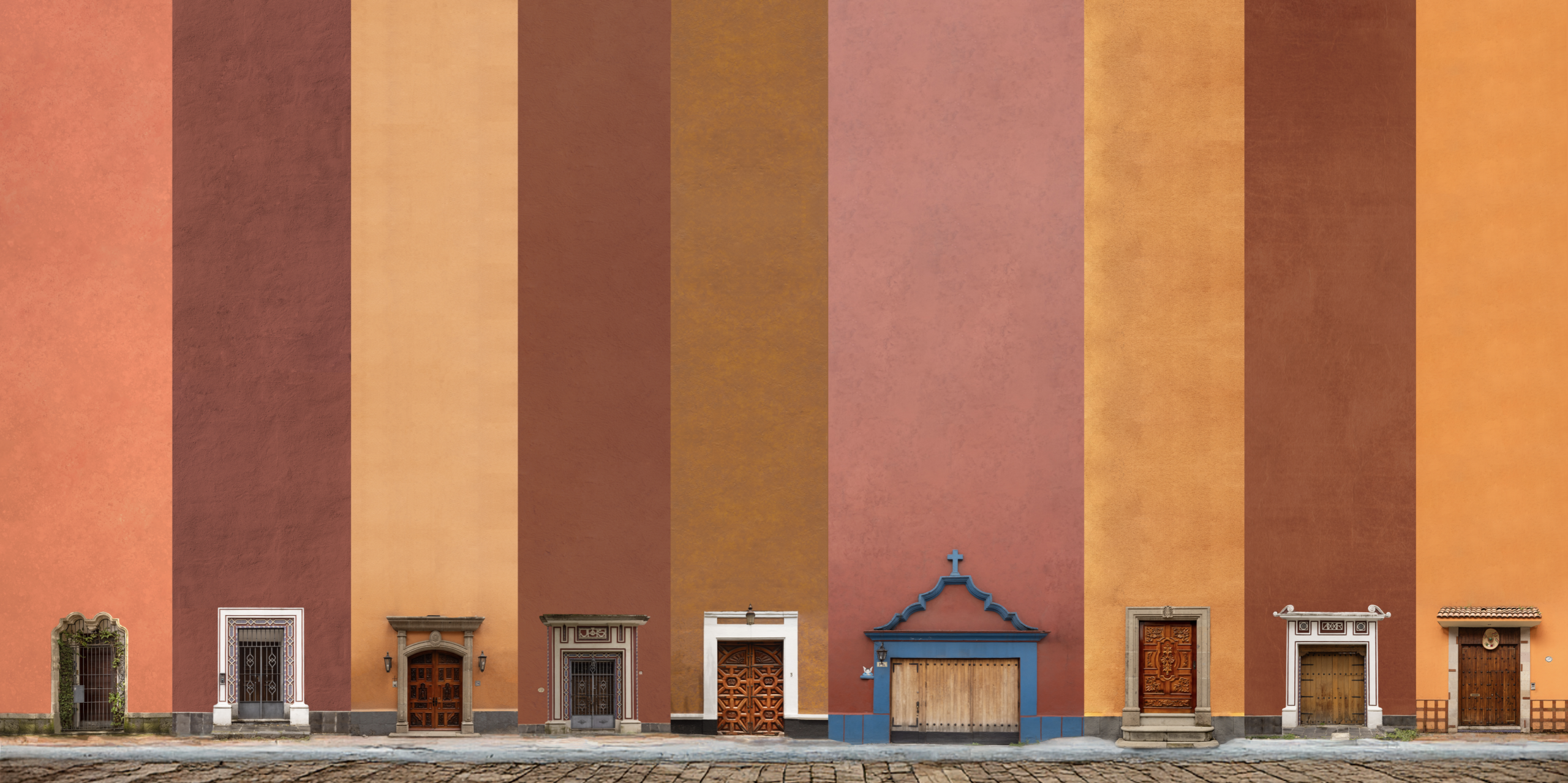 “La charla del Zaguán” explora las fachadas de distintos pueblos y barrios mágicos de México, despojándolas de la mayoría de sus elementos para jugar con su esencia visual y simbólica. Al conservar únicamente las puertas y algunos detalles —como faroles o ventanas— y elevar desproporcionadamente los muros, las composiciones invitan a una lectura diferente del espacio. La paleta de color adquiere un protagonismo emocional, mientras las puertas, reducidas en tamaño, exigen la atención del espectador y lo enfrentan con la intimidad del acceso, con el misterio de lo que permanece oculto detrás.